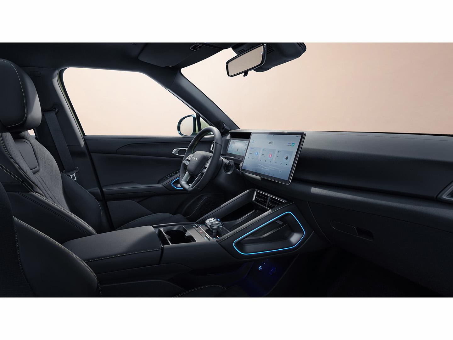 - Acabados de lujo: pomo de la palanca de cambios en símil aluminio, consola central en titanio, puertas en símil aluminio y cuero sintético y tablero en cuero sintético