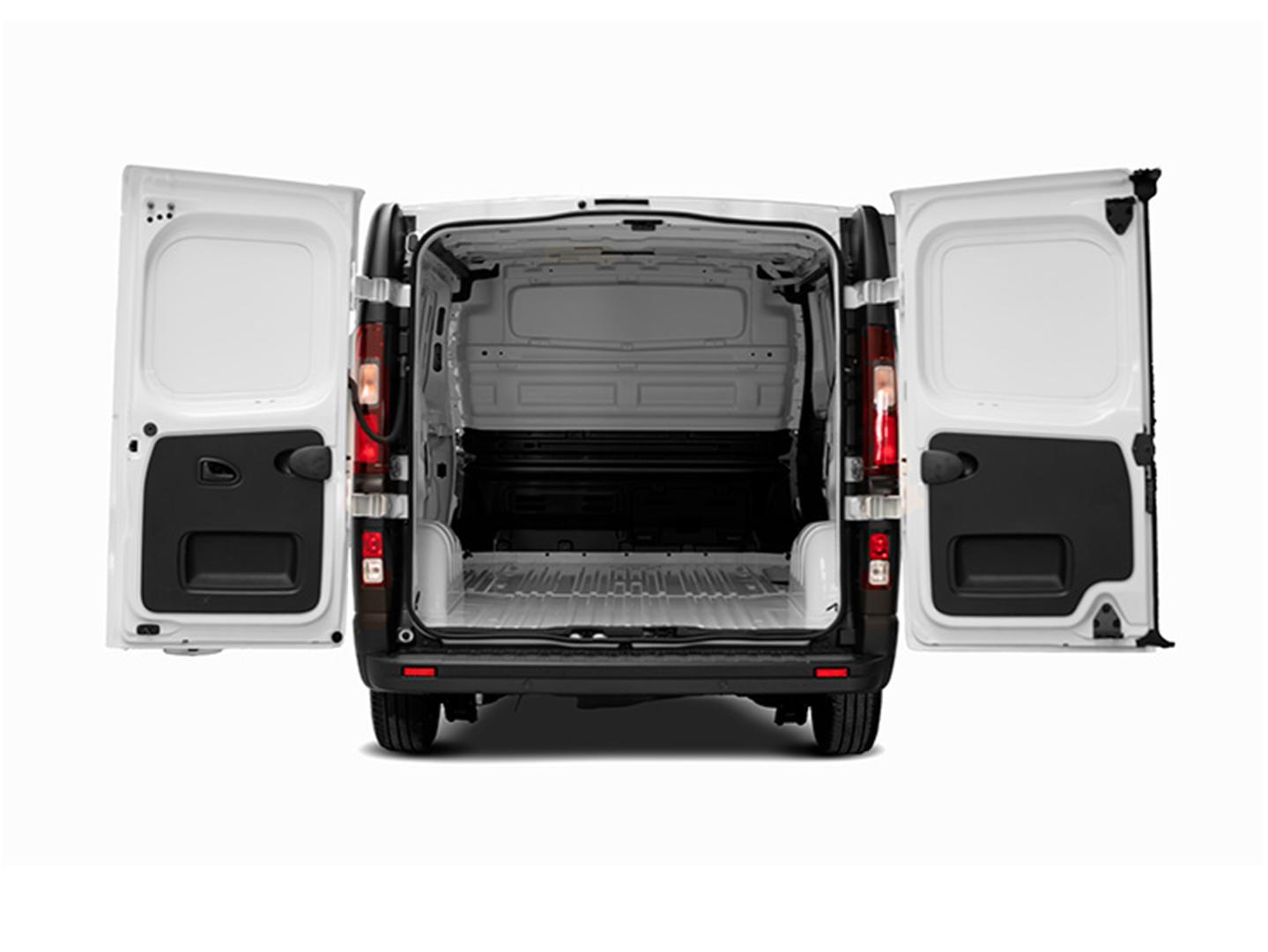 - Acceso a la zona de carga por: Puerta trasera lado pasajero de tipo deslizante 1.030 mm de ancho y 1.284 mm de alto, acceso a la zona de carga por: Puerta posterior de tipo giratoria de doble hoja 1.391 mm de ancho, 1.320 mm de alto y 180 grados de ángulo de apertura