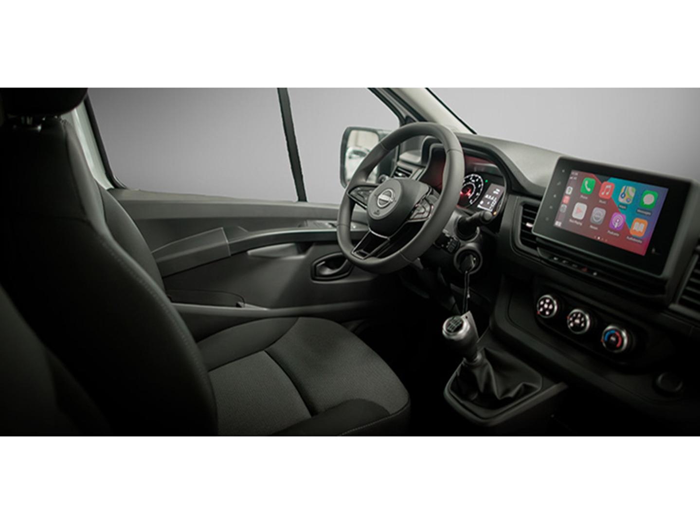 - Asiento delantero del conductor individual, ajuste longitudinal manual, ajuste manual en altura y ajuste lumbar manual con ajuste manual del respaldo, asiento delantero del acompañante tipo banco, abatible con respaldo plegable a posición de mesa, asiento delantero central tipo banco con respaldo plegable a posición de mesa